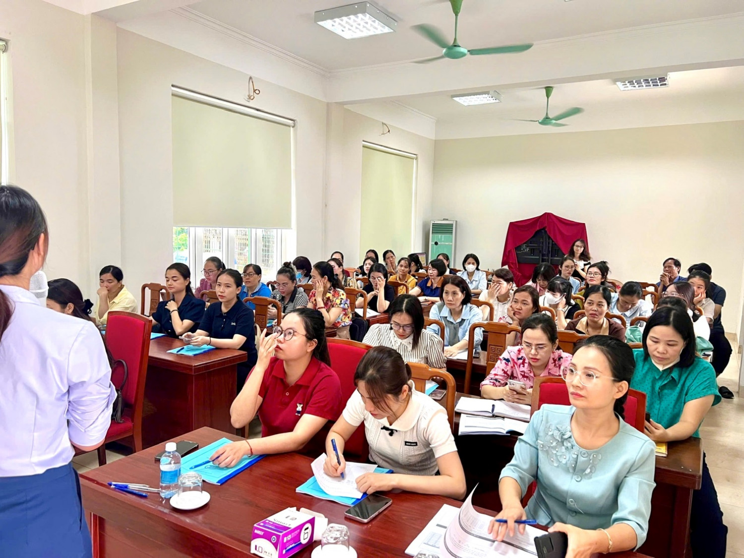 Lớp tập huấn đã được các đồng chí giảng viên đến từ Trung tâm Kiểm soát bệnh tật tỉnh hướng dẫn công tác an toàn tiêm chủng; Quy trình bảo quản vận chuyển vắc xin; Quy trình tổ chức buổi tiêm chủng, khám sàng lọc trước tiêm, các quy định mới về công tác tiêm chủng, triển khai tiêm chiến dịch vắc xin Td cho trẻ 7 tuổi, kiểm tra tiền sử và tiêm chủng bù liều cho trẻ nhập học tại các cơ sở giáo dục mầm non, tiểu học …